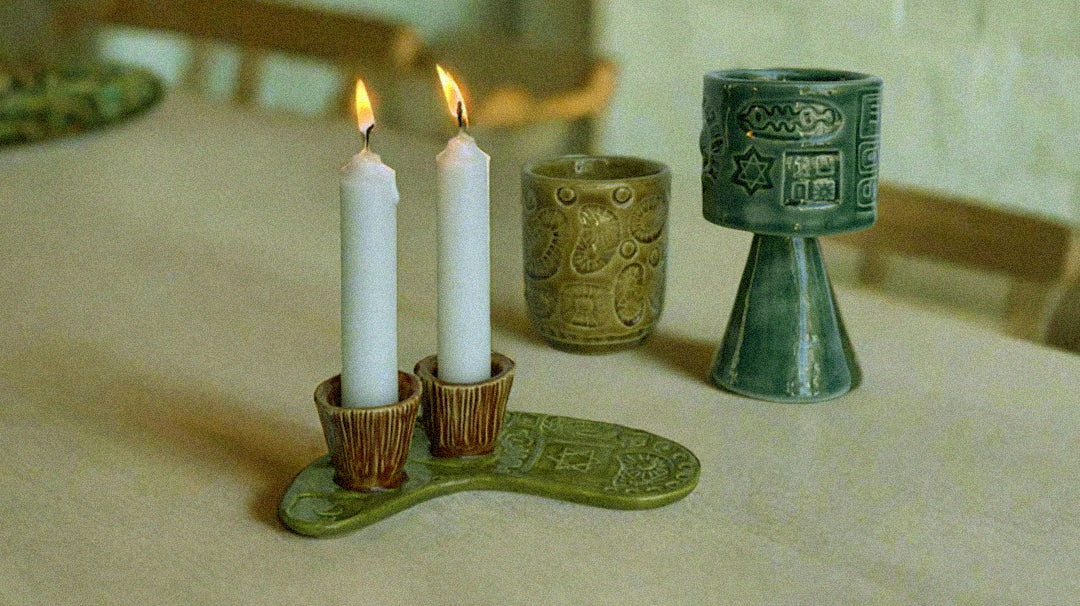 • Jewish pottery shabbat candle holder for candlesticks, ceramic handmade sabbath day candle stand holder for jewish sabbath, handmade pottery for judaism shabbat judaica store and jewish gifts. Handcrafted jewish art by judaica artist Shana Ostrowiecki in California, made in the usa. Handpainted and one of a kind burnt orange olive green