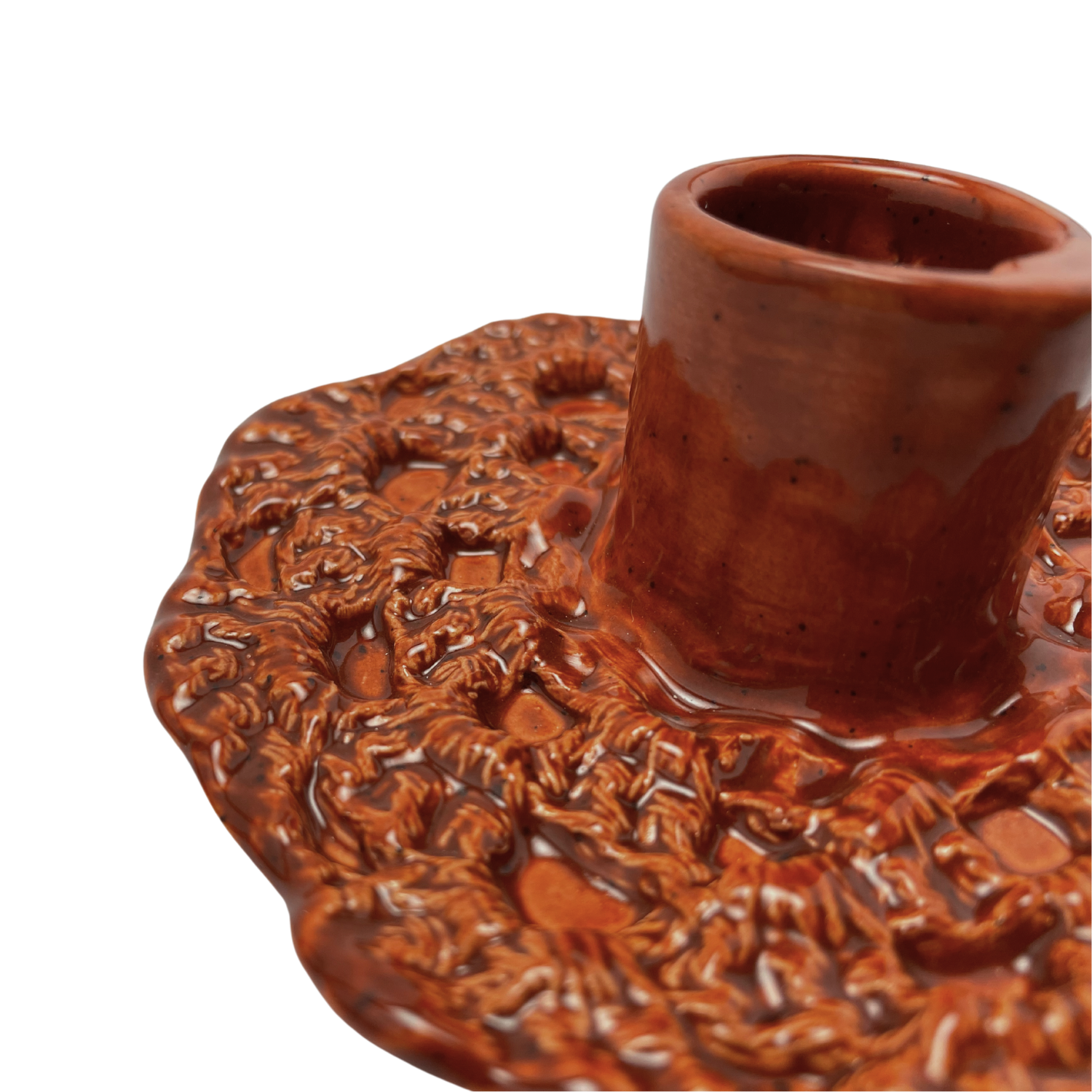 Ceramic Crochet Candle Holder - Charoset Burnt Orange