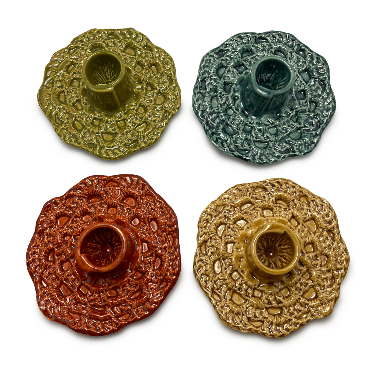 Ceramic Crochet Candle Holder - Deli Mustard Yellow