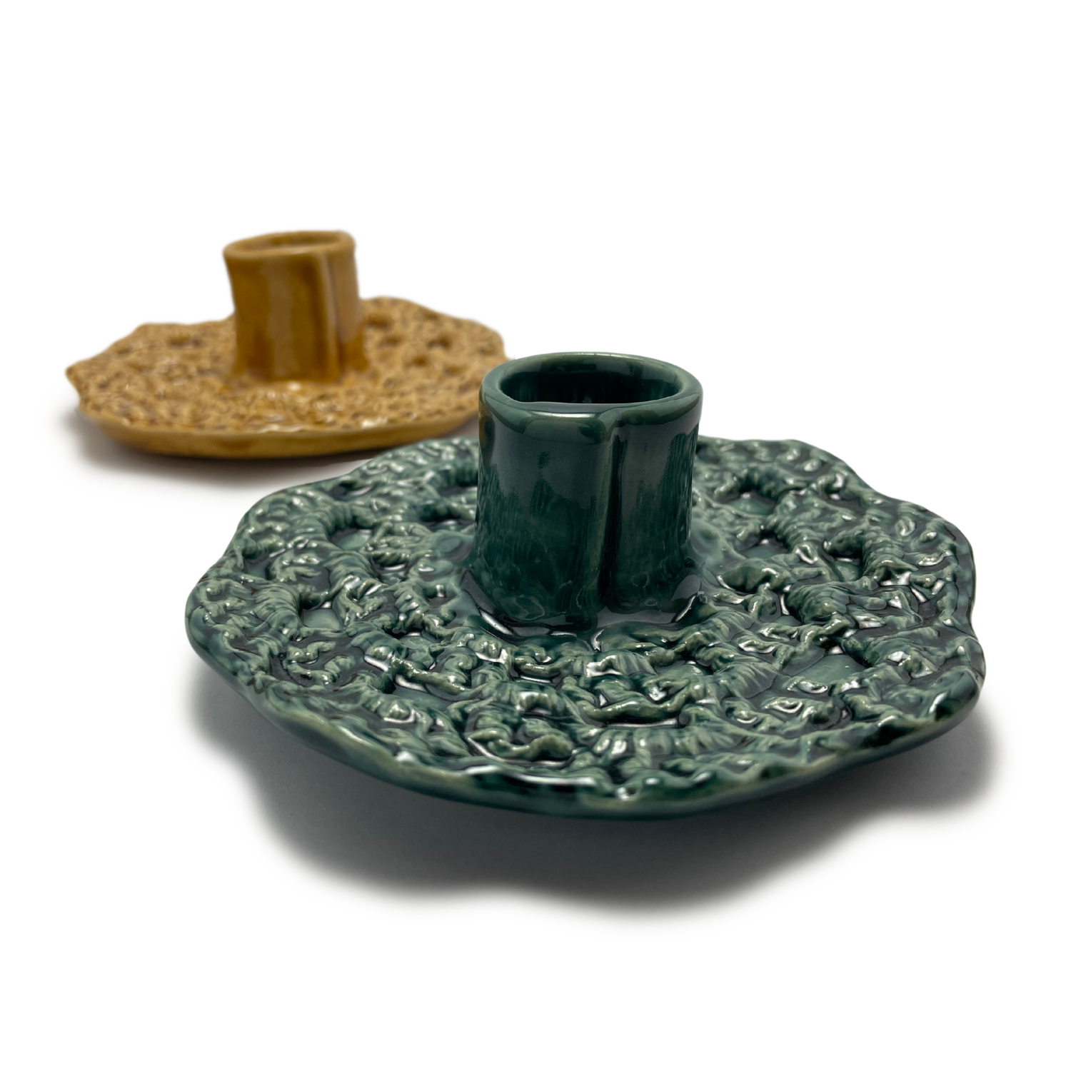 The final step involves a kiln-firing at ~2000°F, which enhances the depth of the glaze and strengthens the ceramic, resulting in a beautifully crafted and durable candle holder.