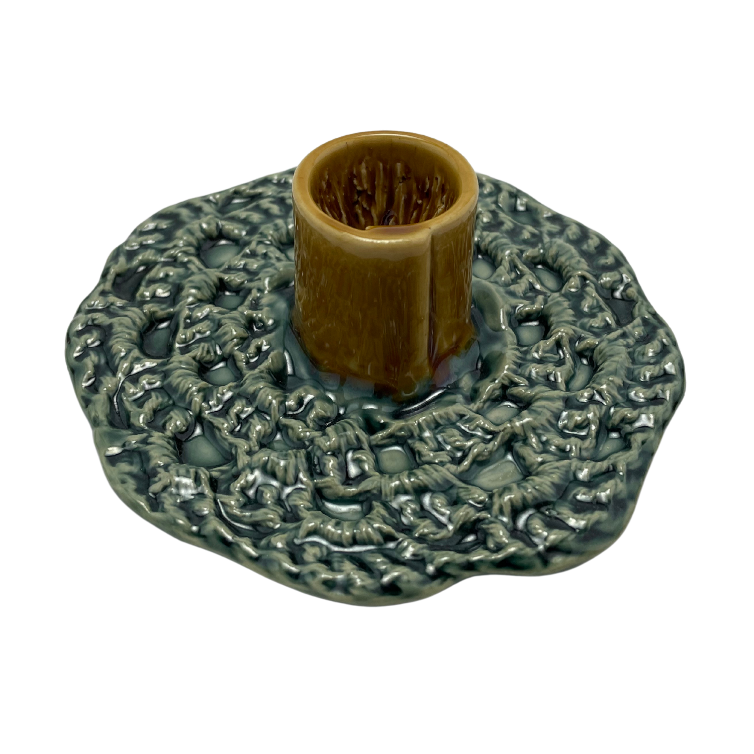 The final step involves a kiln-firing at ~2000°F, which enhances the depth of the glaze and strengthens the ceramic, resulting in a beautifully crafted and durable candle holder.