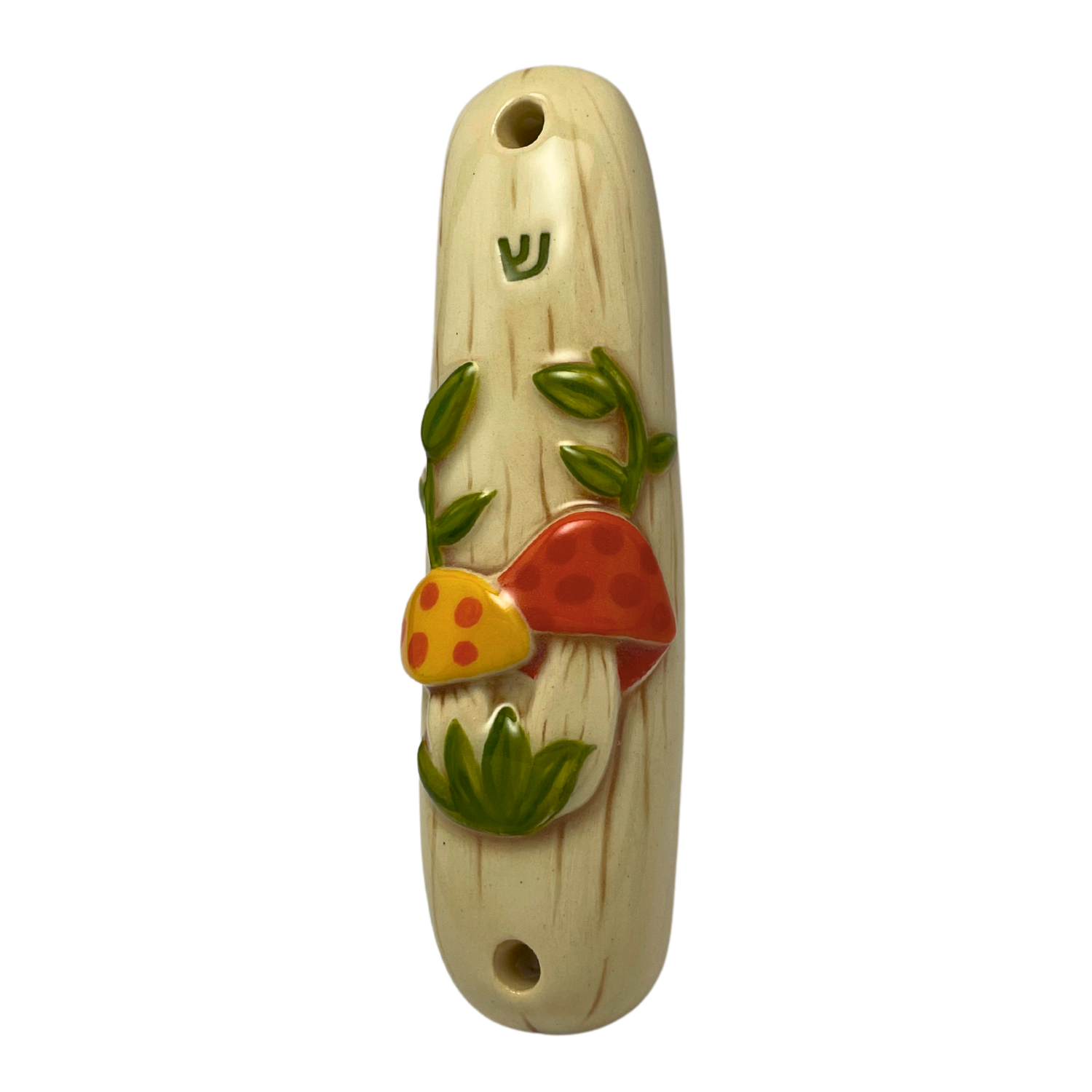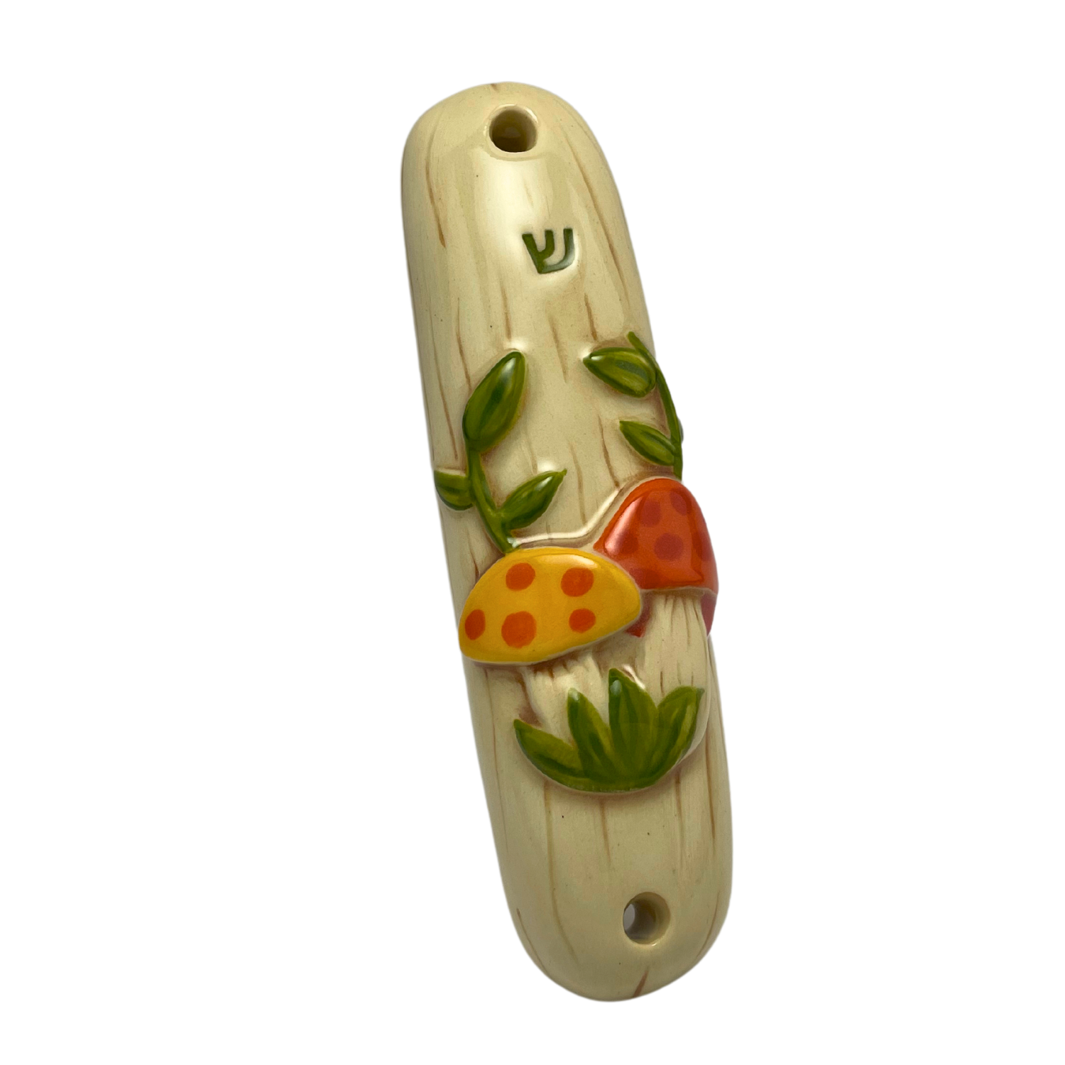 Vintage mushroom-style ceramic mezuzah. Each mezuzah is intricately crafted to elevate your rituals through the practice of beautifying Jewish observances.