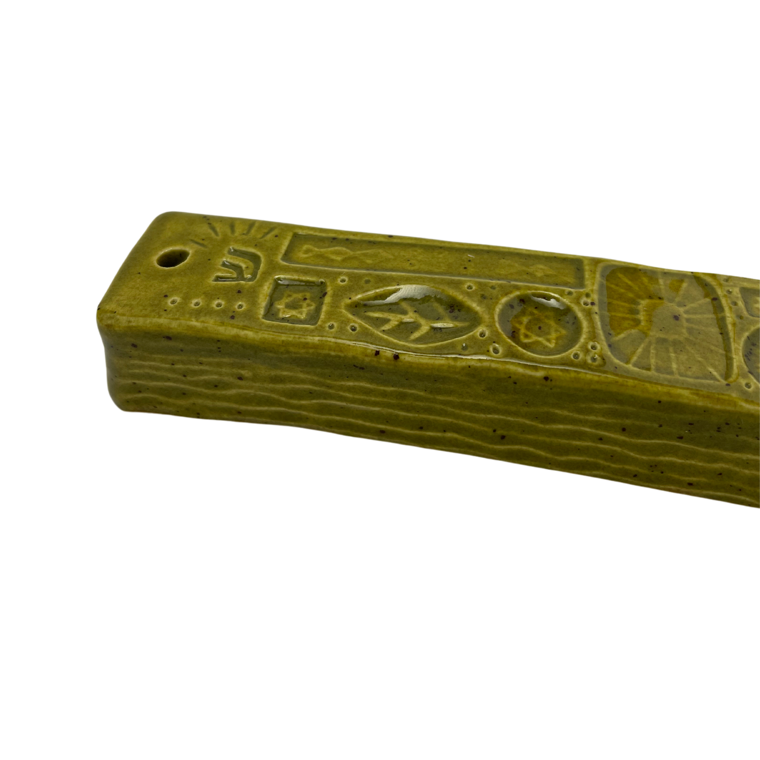 Shana Ostrowiecki begins by working the clay by hand to prepare it for sculpting the mezuzah’s main body. She uses a selection of hand-building techniques to create distinctive textures and embellishments, imbuing each piece with intricate detail.