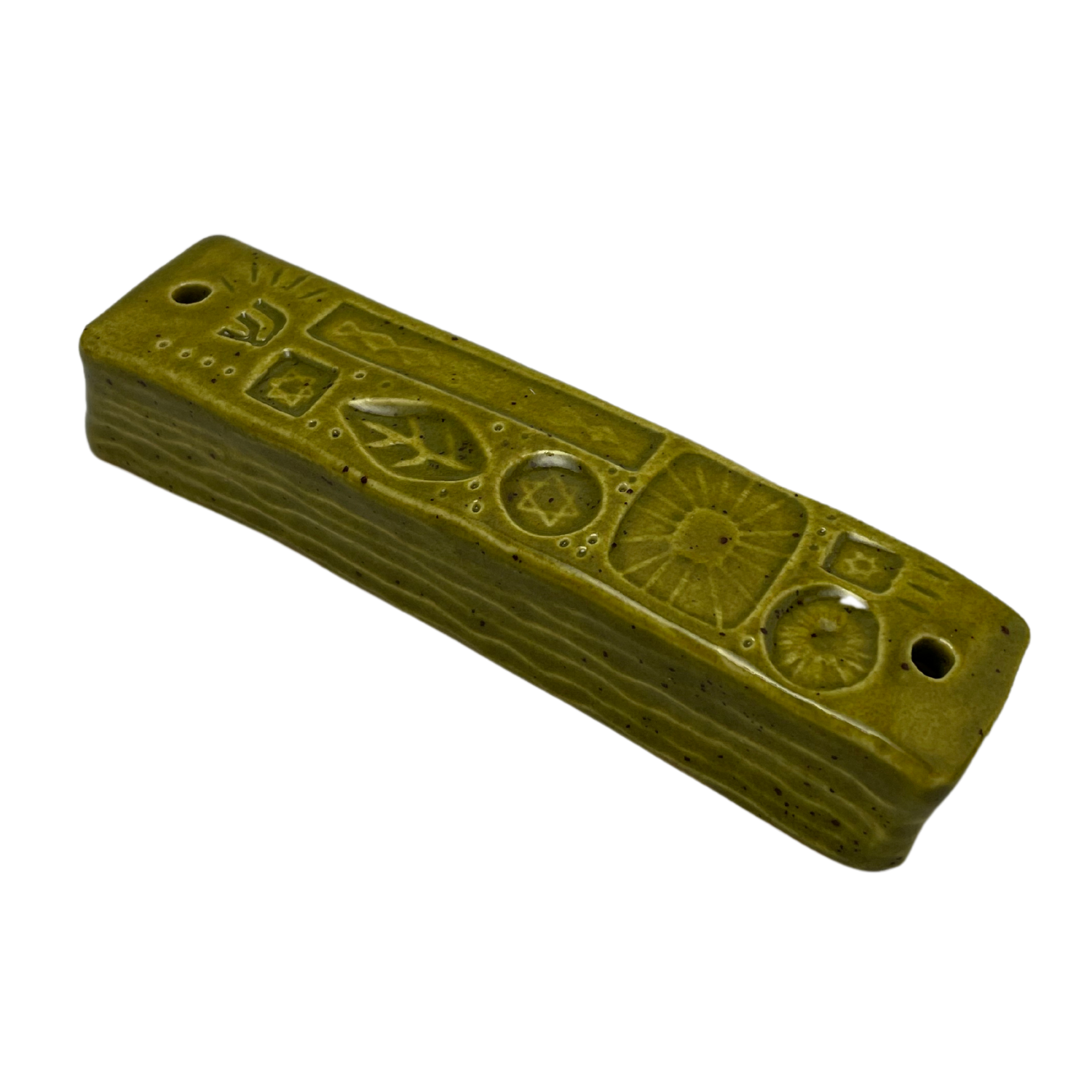 The final step involves kiln-firing at approximately 1,926°F, which enhances the glaze's depth and strengthens the ceramic, resulting in a beautifully crafted and remarkable mezuzah.
