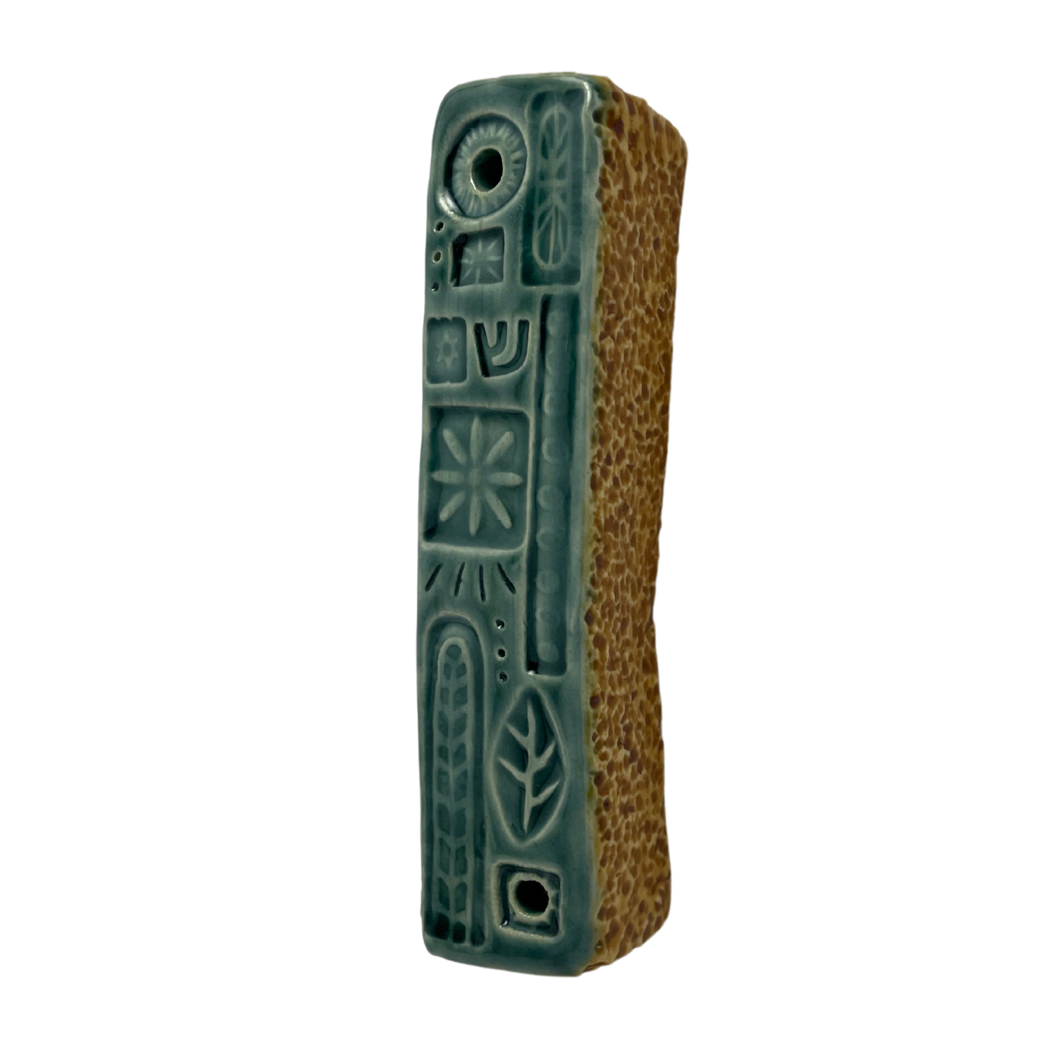 The final step involves kiln-firing at approximately 1,926°F, which enhances the glaze's depth and strengthens the ceramic, resulting in a beautifully crafted and remarkable mezuzah.