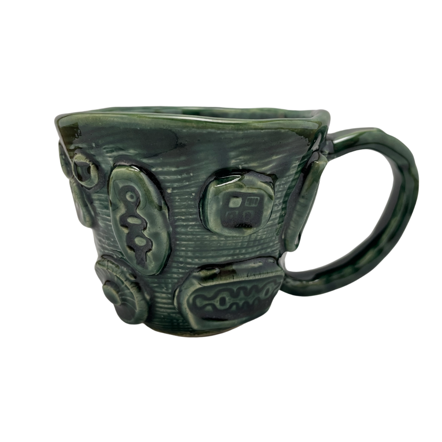 Stoneware mug handmade in California. Each mug features distinctive, meticulously handcrafted elements, ensuring individuality in every piece.