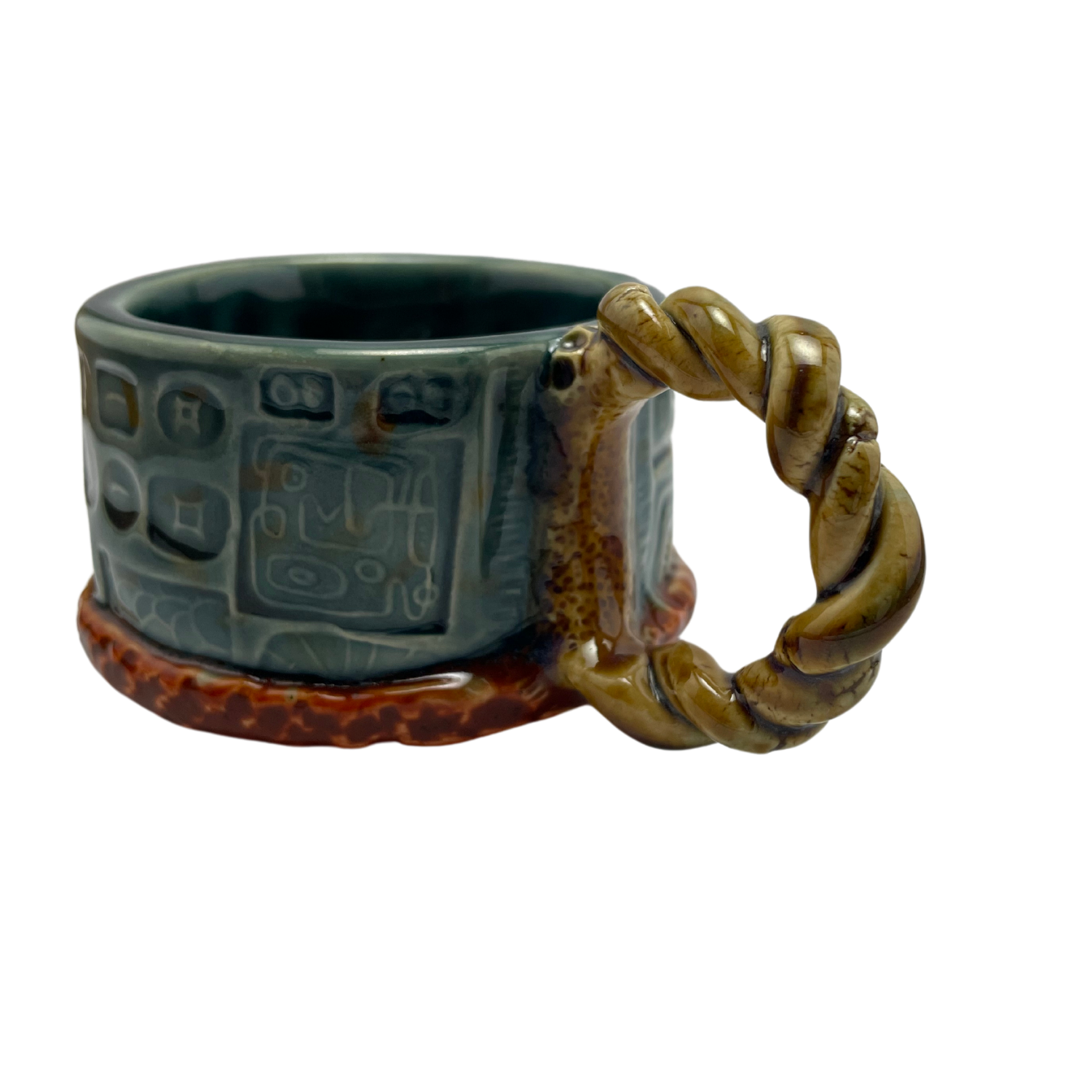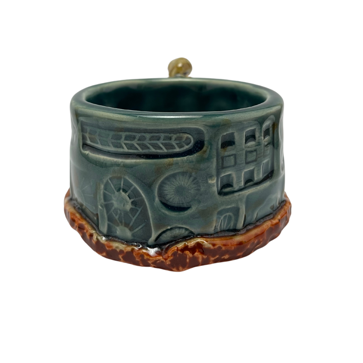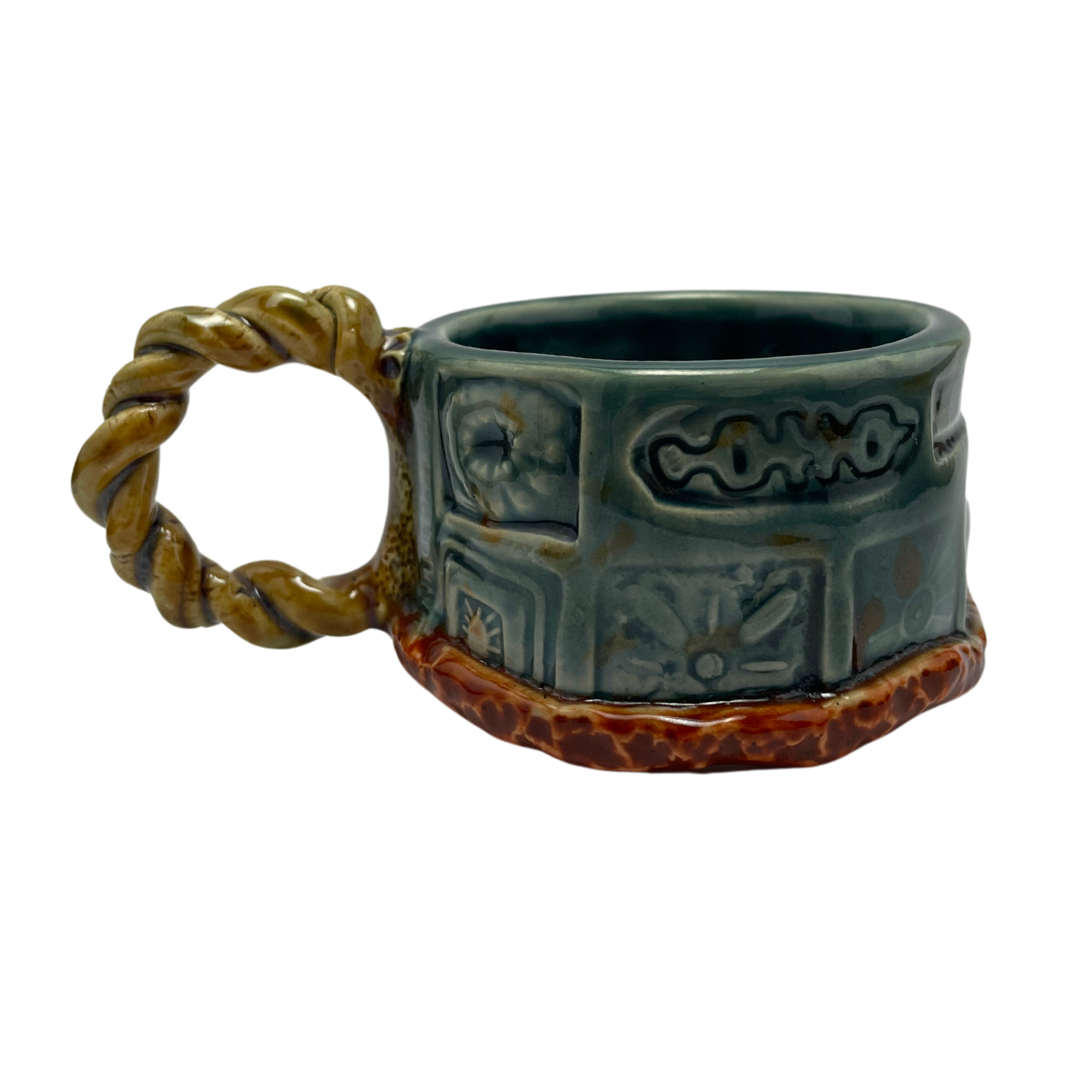 Stoneware mug handmade in California. Each mug features distinctive, meticulously handcrafted elements, ensuring individuality in every piece.