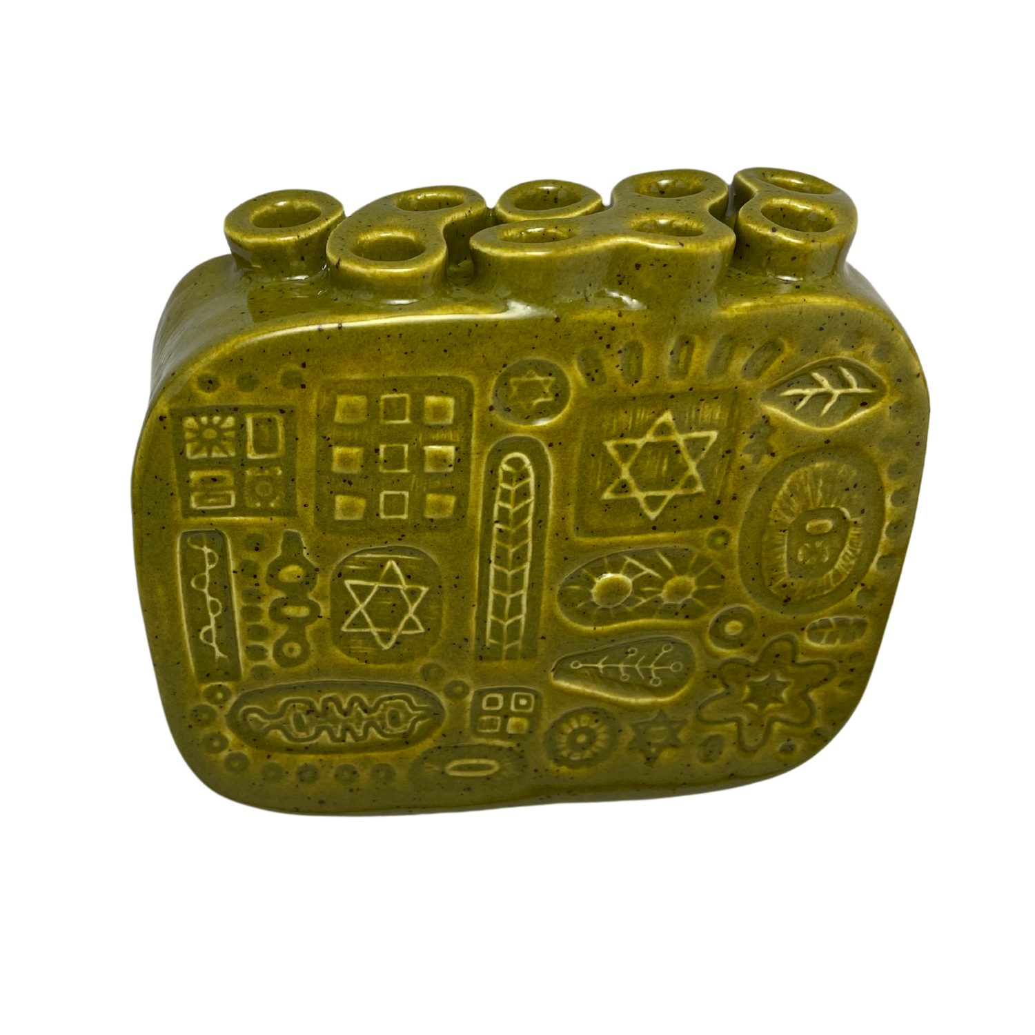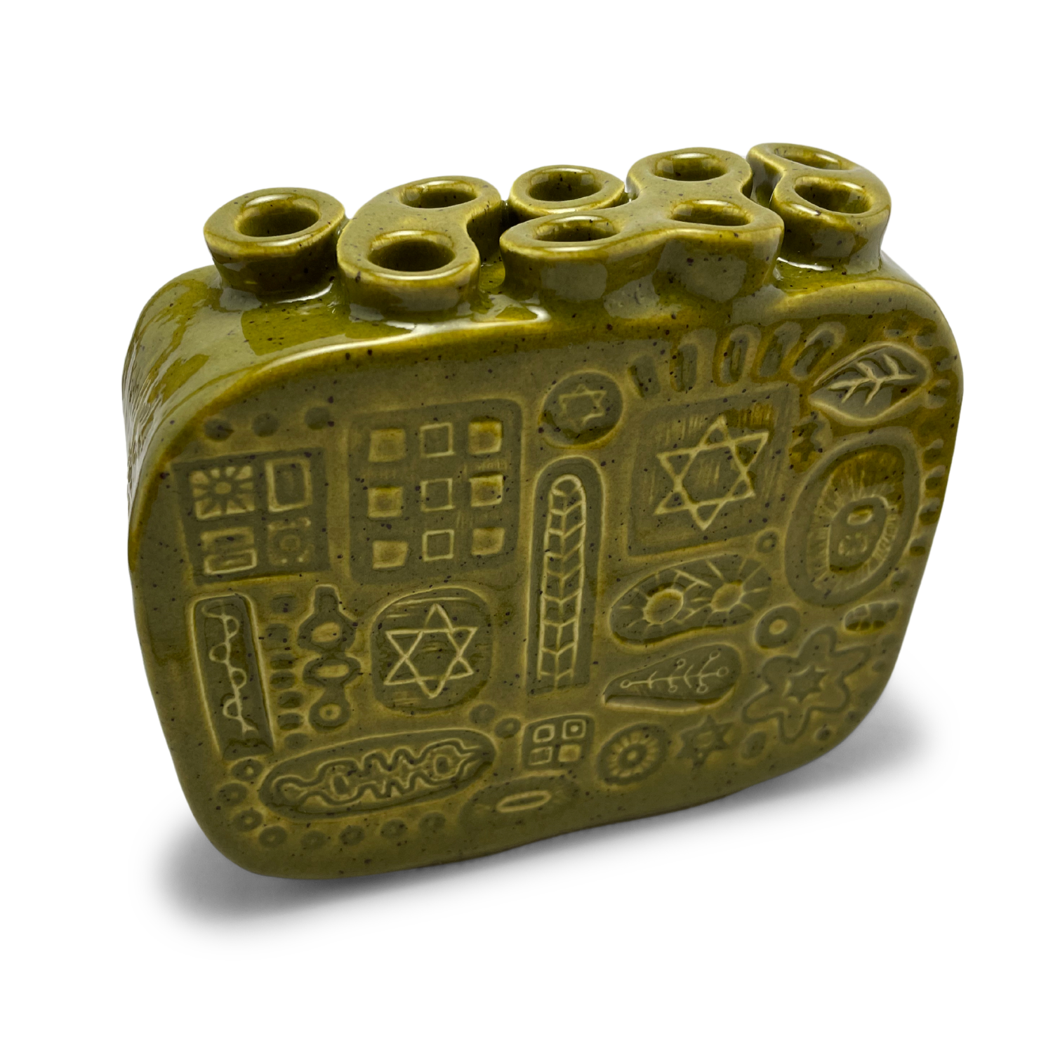 Handcrafted Stoneware Menorah - Kosher Dill Green