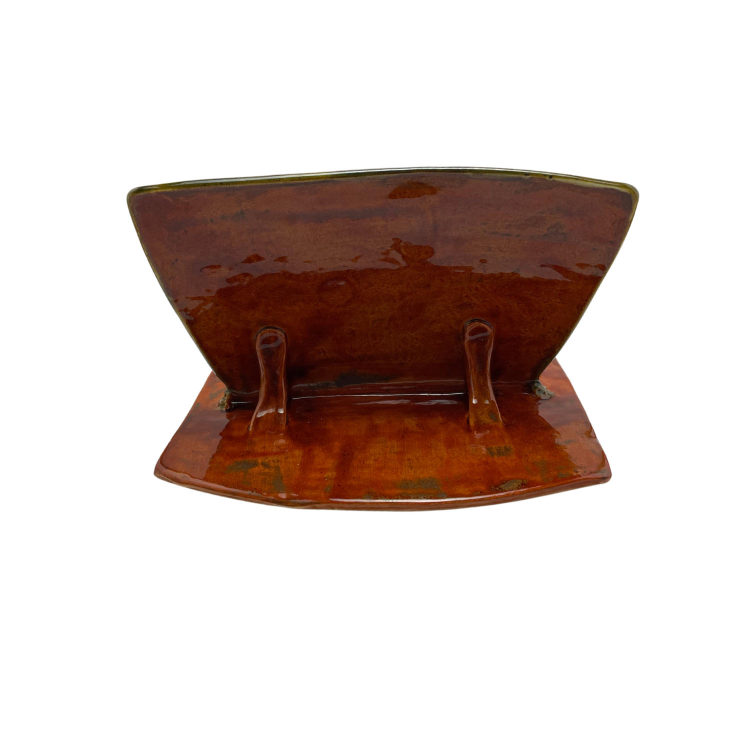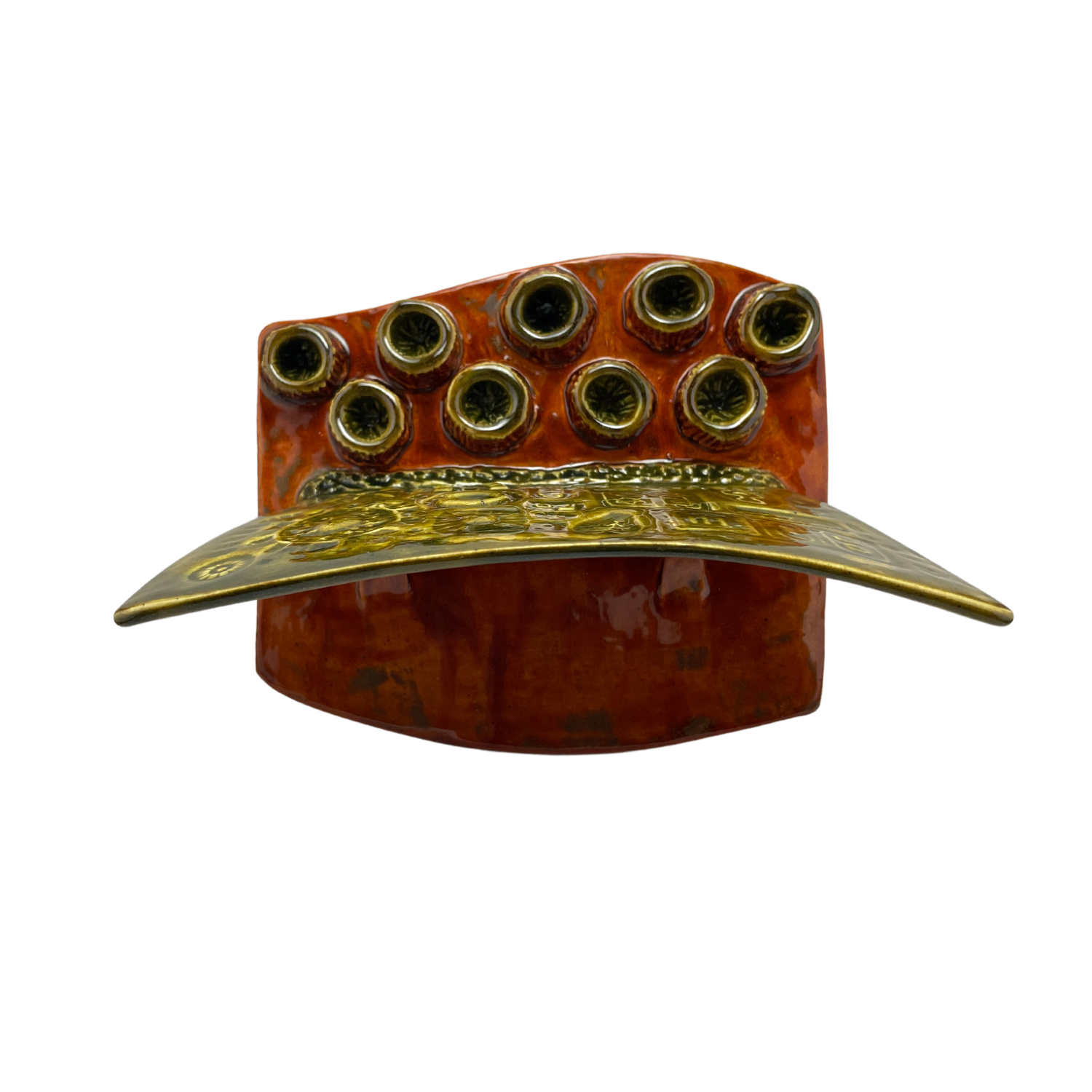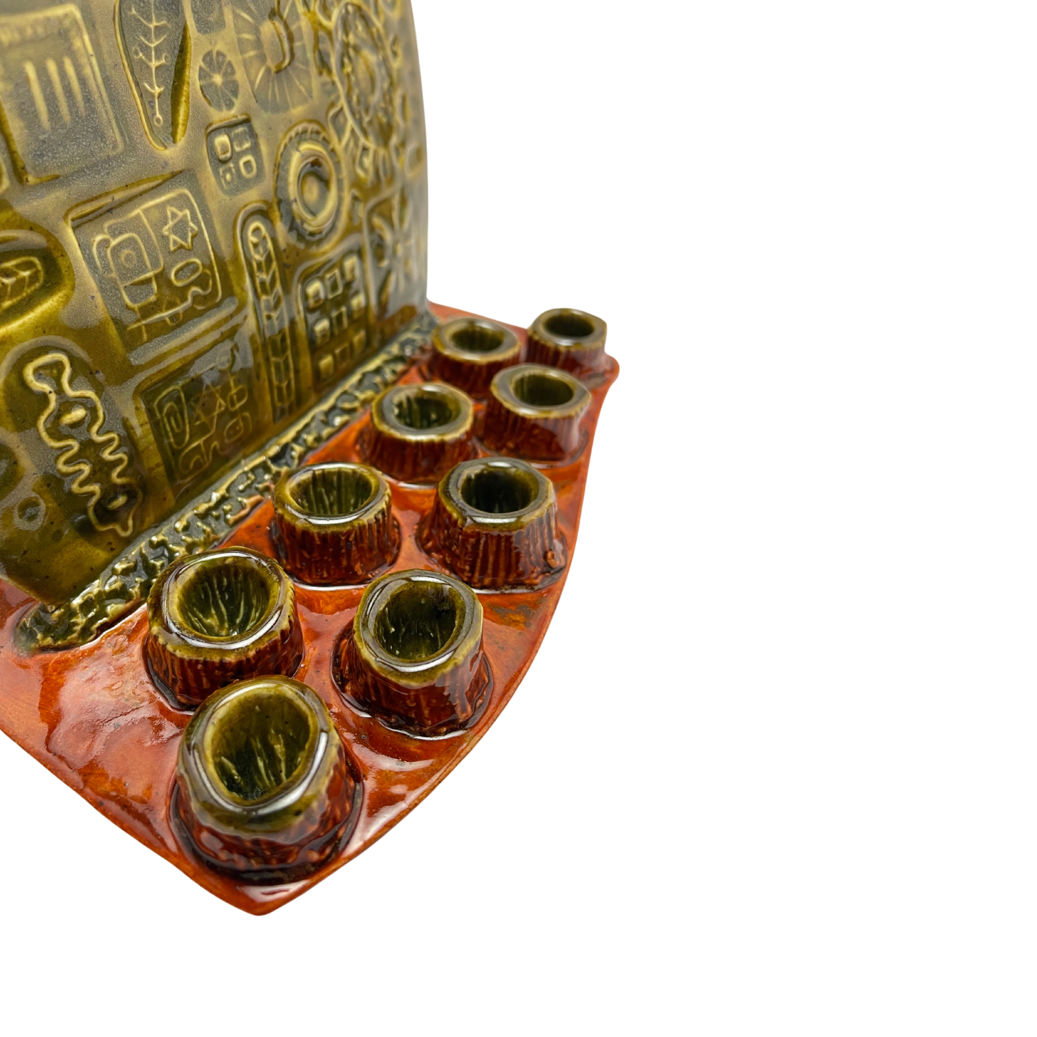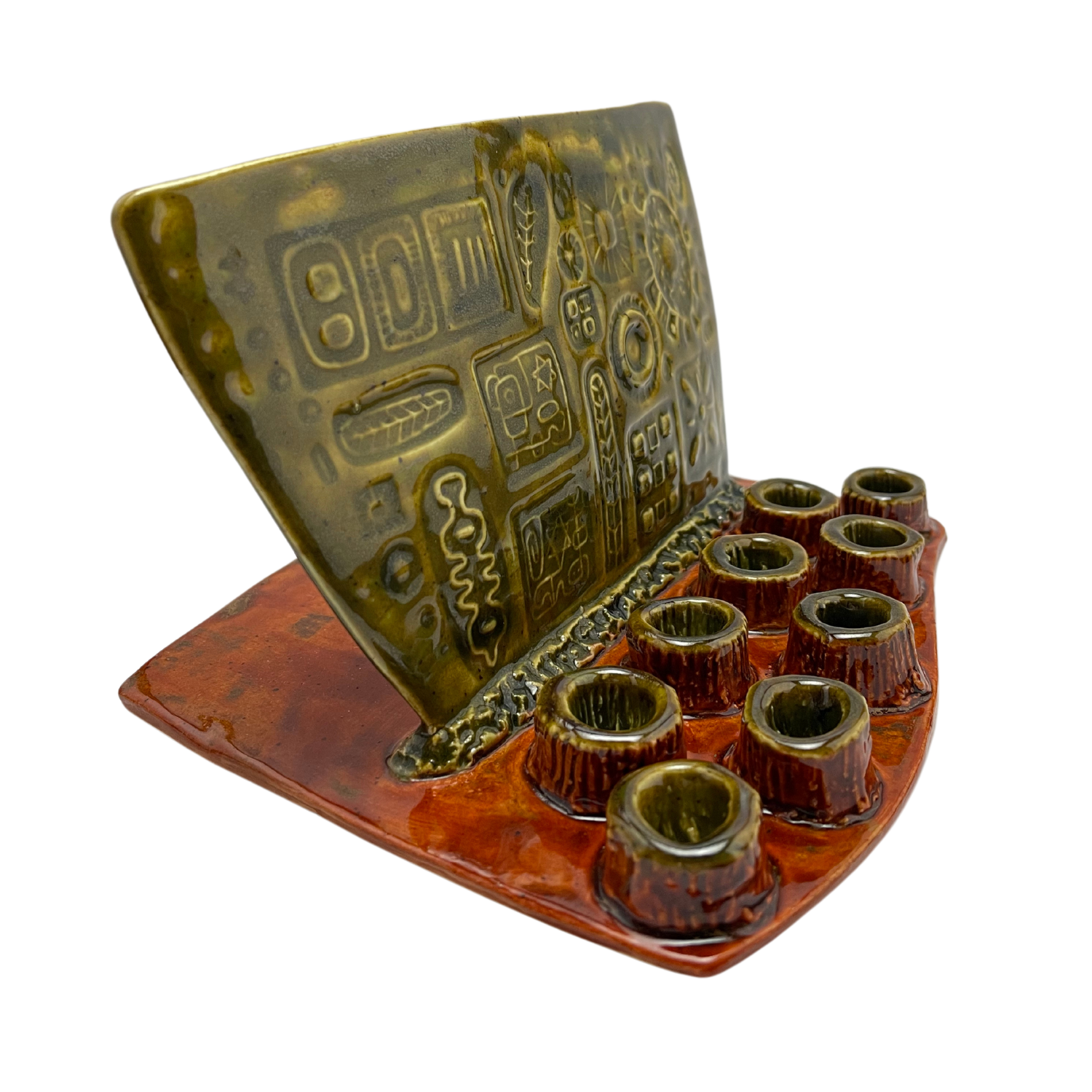 Handcrafted Stoneware Menorah - Olive Green and Charoset Burnt Orange