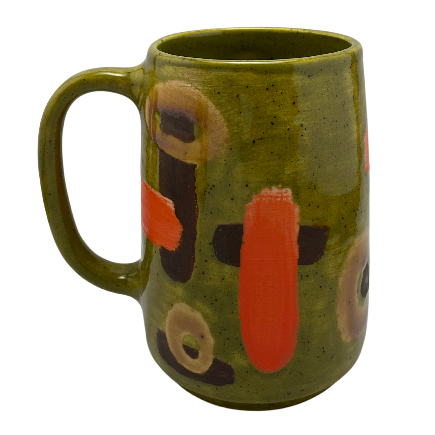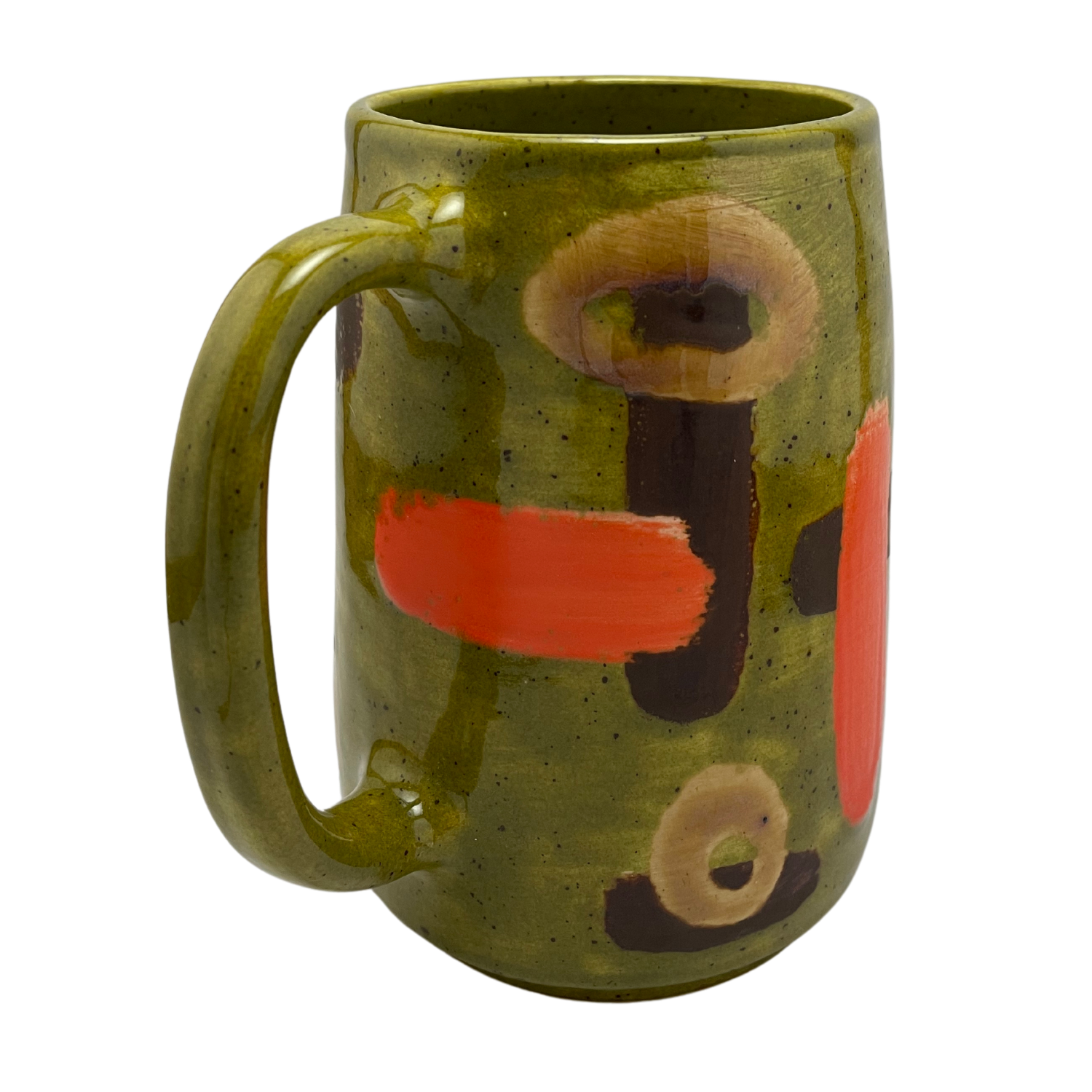 Large Mug with Handle - Kosher Dill Green with Shapes