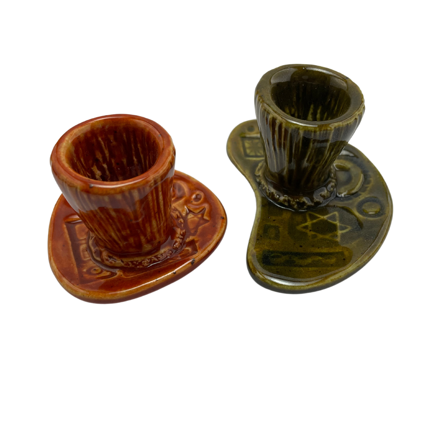 The final step involves kiln firing at approximately 2000°F, which enhances the depth of the glaze and reinforces the ceramic. This meticulous process results in a beautifully crafted and durable Shabbat candle holder set.