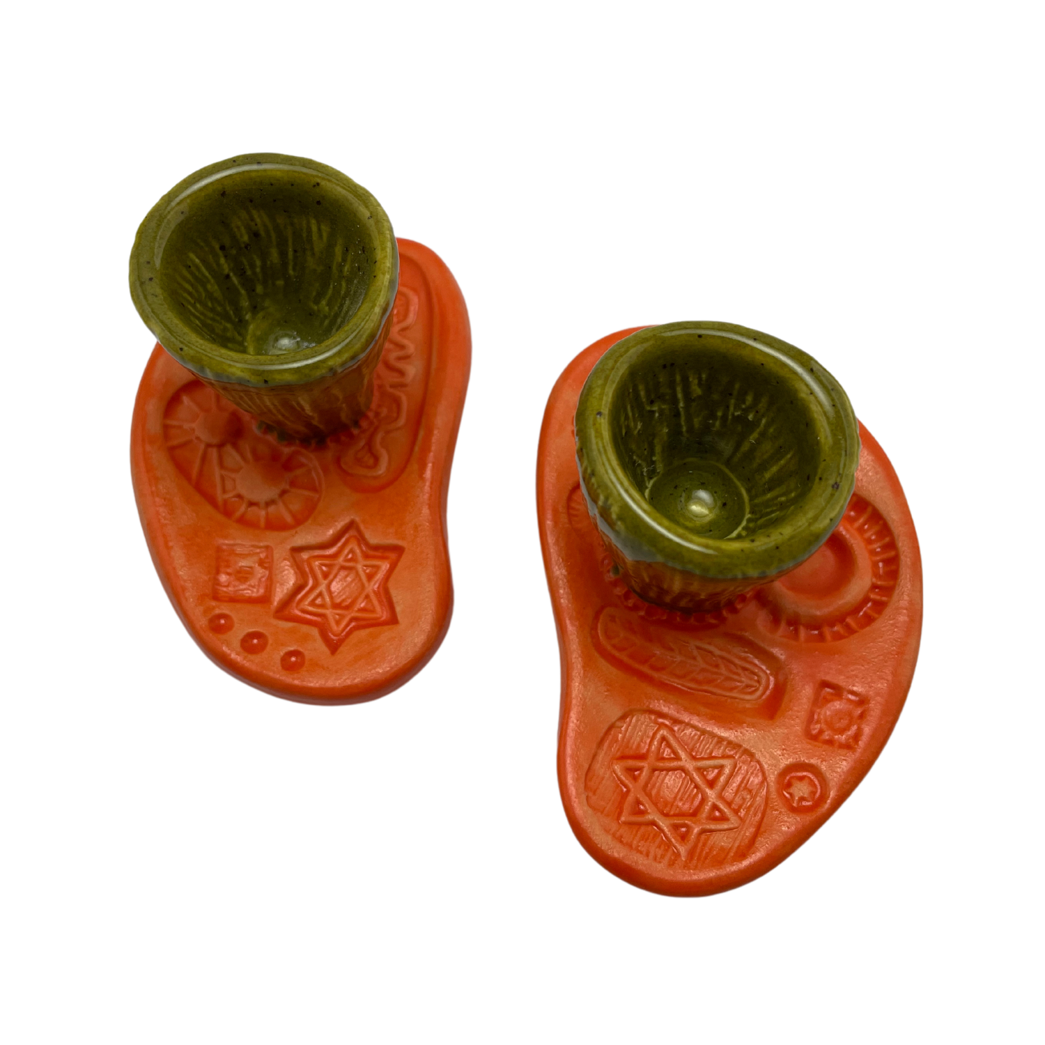 Shabbat Candle Holder Set - Osher Orange and Kosher Dill Green