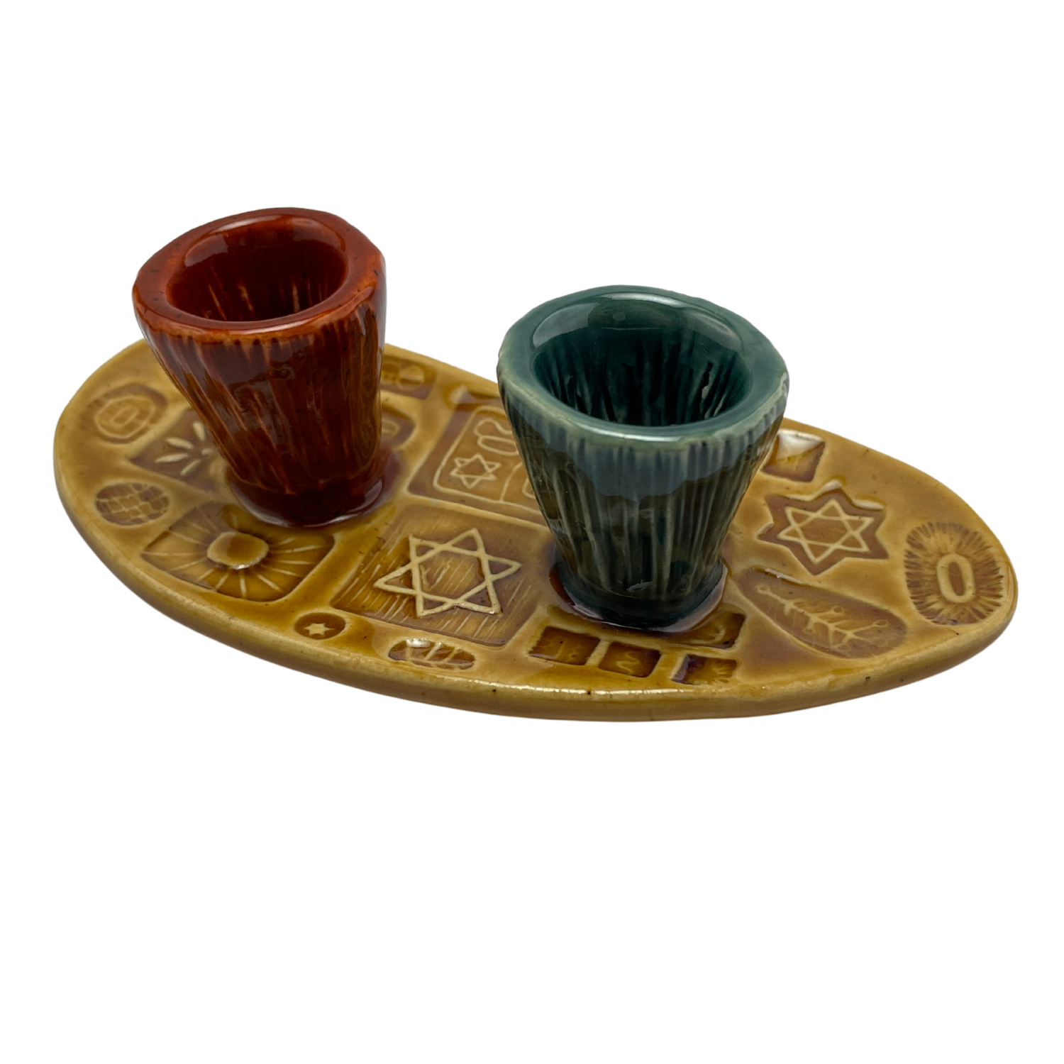 Shabbat Candle Holders - Deli Mustard Yellow, Charoset Burnt Orange, and Tayer Teal
