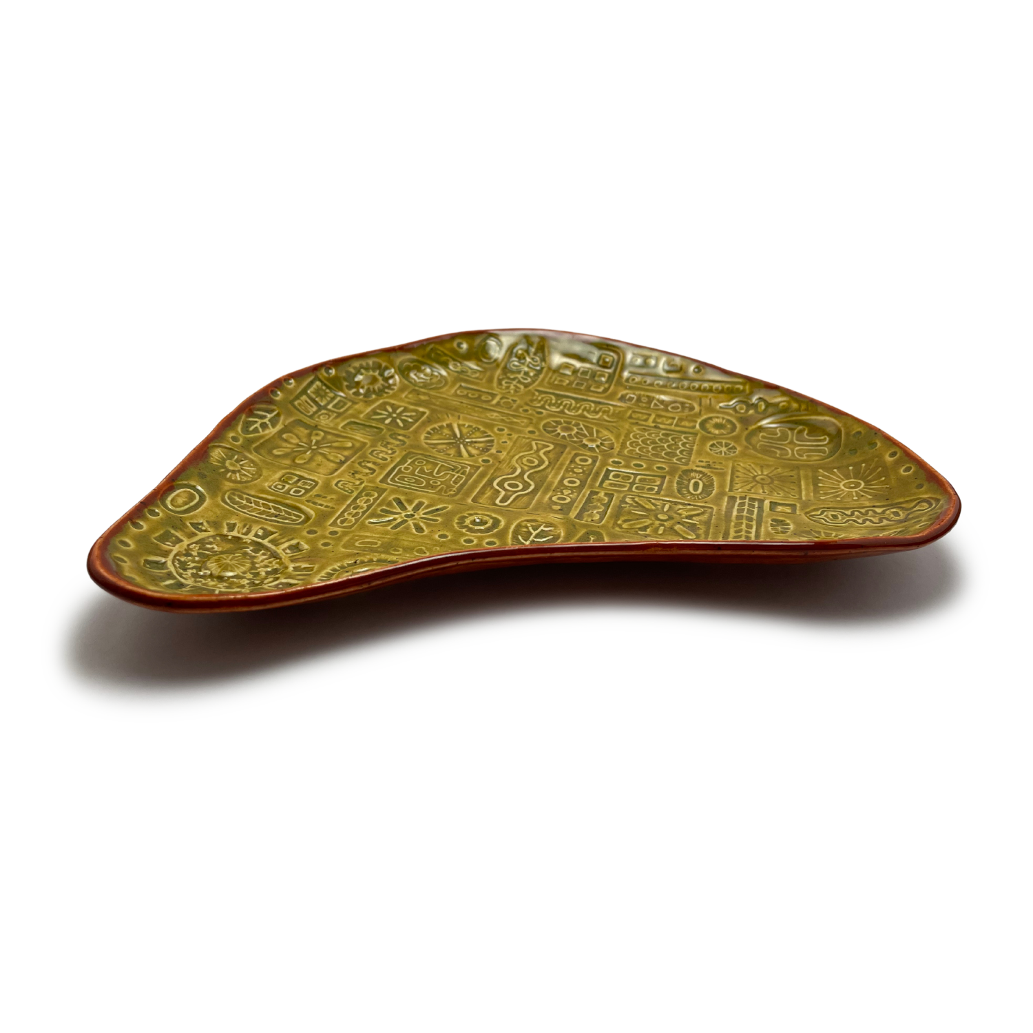 Small Ceramic Platter Tray, 8" - Kosher Dill Green and Charoset Burnt Orange